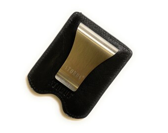 Storus Smart Money Clip Leather, Stainless Steel Money Clip + Leather Wallet, Minimalist RFID Black Italian Leather, for Men, Women, Gift 1pc